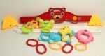 In addition to stimulating your baby’s senses, the vibrantly coloured hanging toys aid in the development of their hand-eye coordination and motor abilities.  Your child will remain attentive and content whether you are lying on their back or doing tummy time.