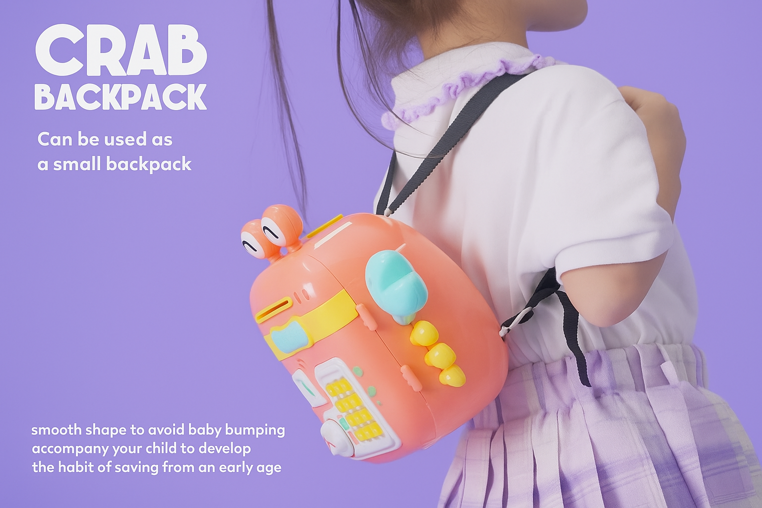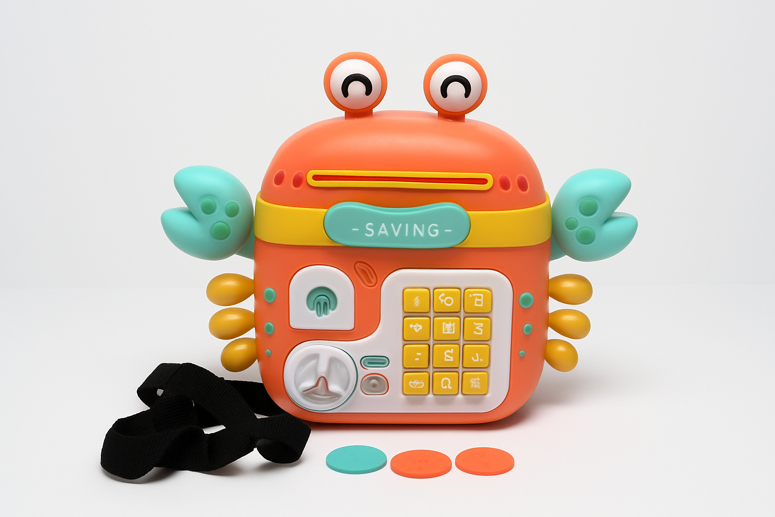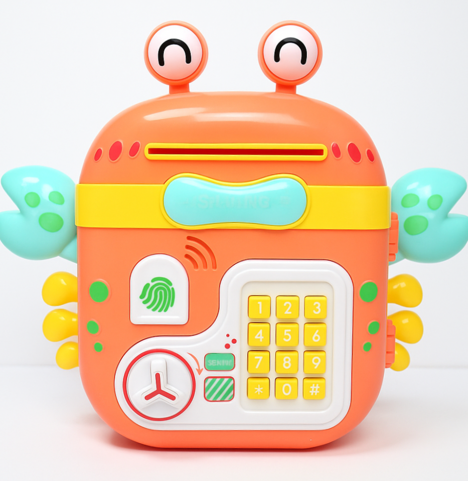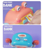 The Pumpkin Toy Crab Piggy Bank is a clever, entertaining, and instructive savings bank made especially for children that will make learning about money enjoyable. This toy money bank entertains kids while teaching them important life skills like saving, counting, and handling coins. It has an electronic keypad lock, interactive lights, and sound effects, and it has a cute cartoon crab shape.