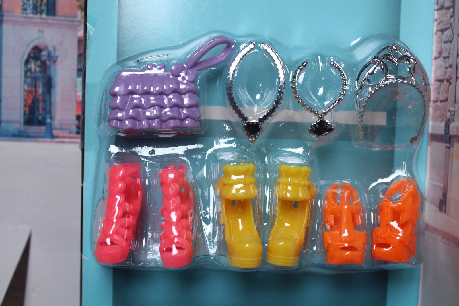 Bring delight and creativity to your child with the Doll Play set , a comprehensive fashion and role-playing kit! This charming set comes with a princess crown to finish the regal look, colourful purse, adorable shoes, and a finely constructed doll wearing a variety of stylish costumes.