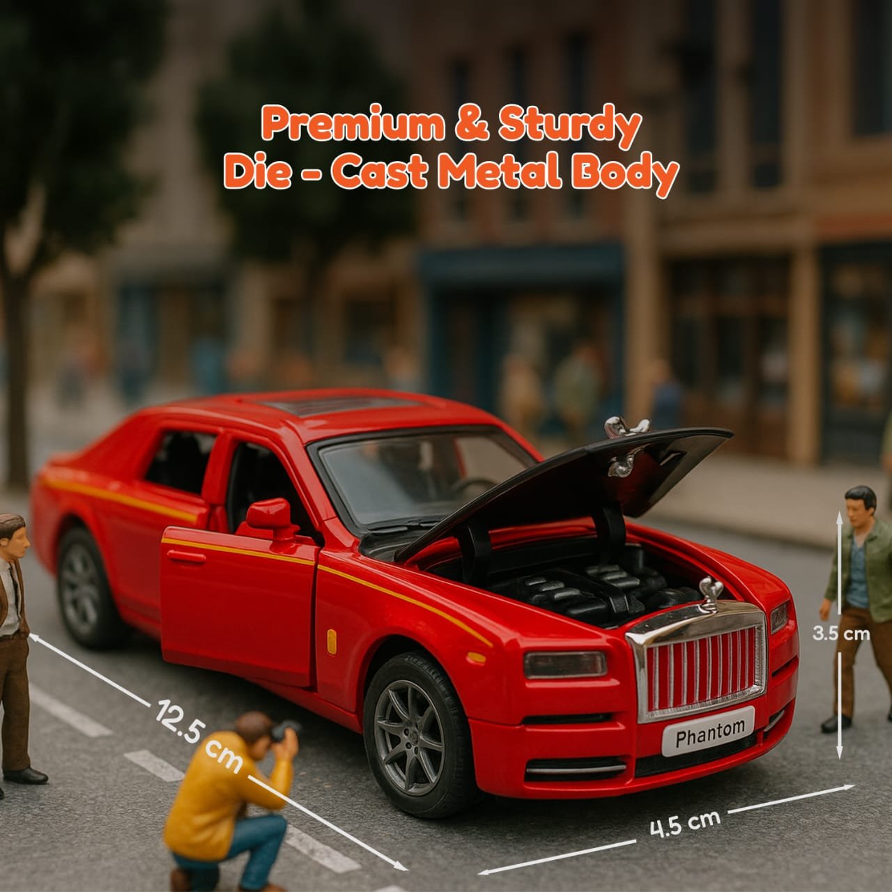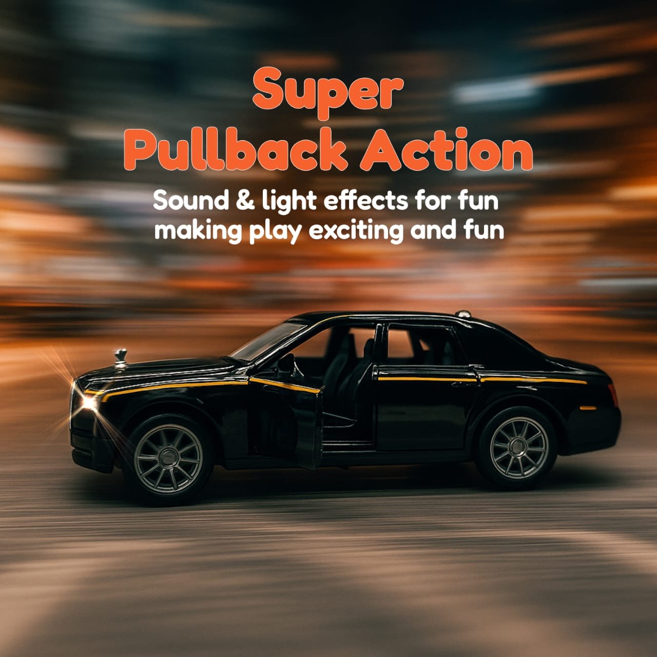 Rolls Royce Phantom Die-Cast Metal Pull Back Toy Car with Lights, Sound & Openable Doors, Alloy Car Model for Kids Boys Girls
