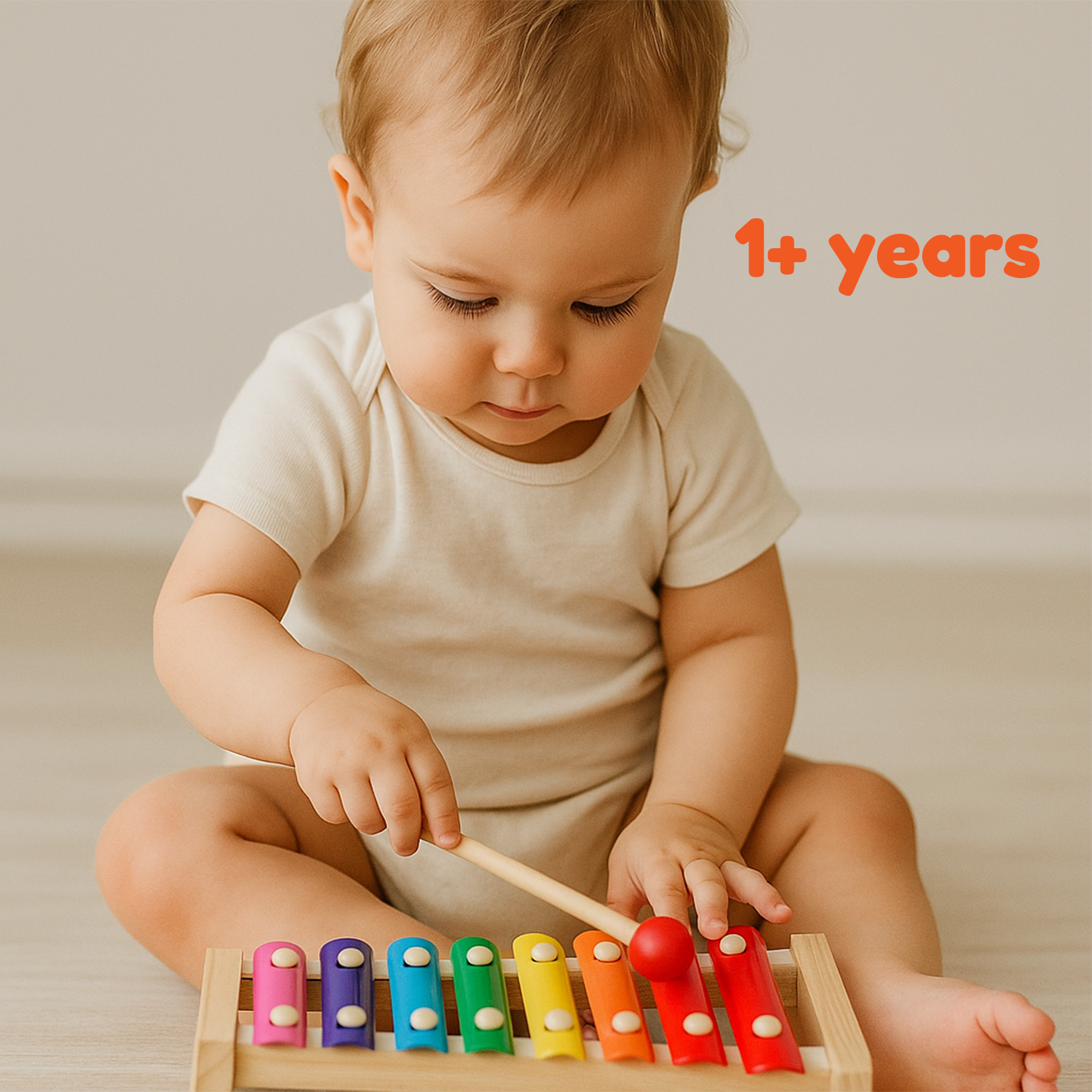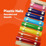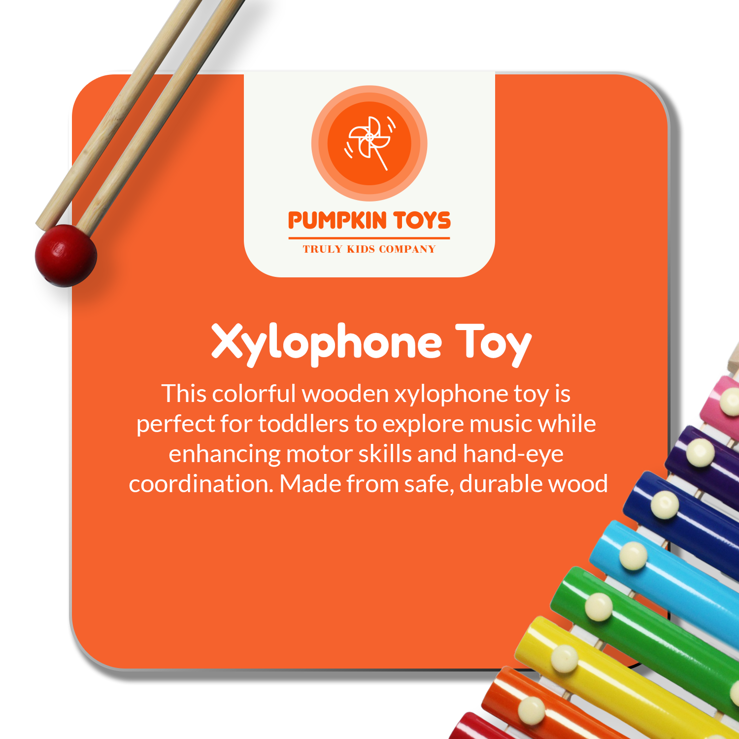 wood and painted with non-toxic, child-safe colours, this xylophone features bright, colourful keys that produce clear, pleasant tones Perfect for early learning, it helps develop hand-eye coordination, fine motor skills, and a love for music.